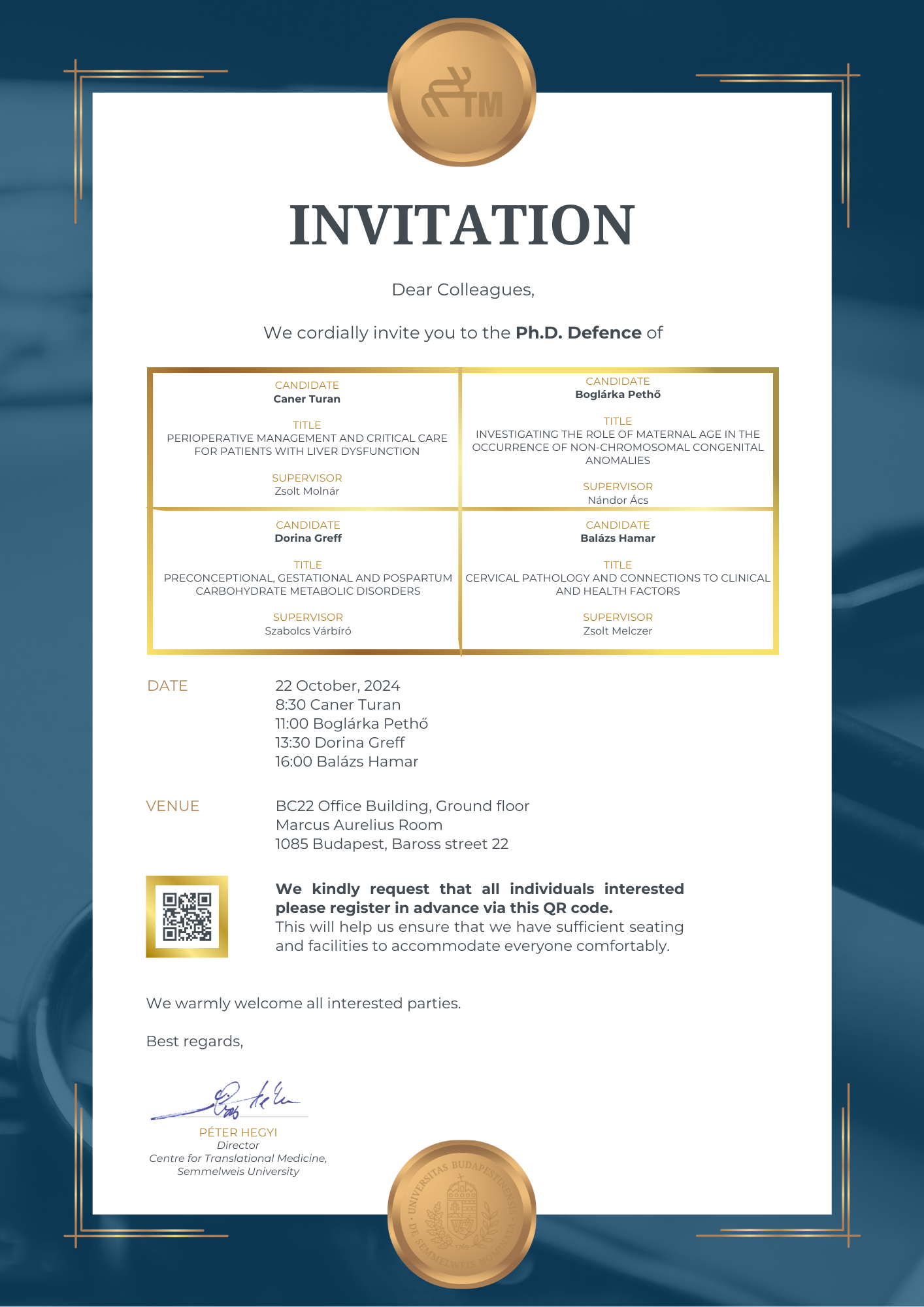 PhD defence Tue, 10/22/2024 - 08:30 Tue, 10/22/2024 - 17:30 Photos taken at the event are available here.The event was supported by the MOL-New Europe Foundation.